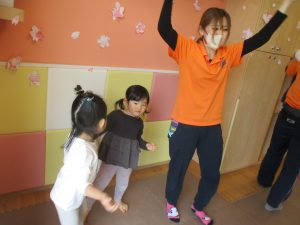 さくらさくらんぼ体操は、ピアノの音が聞こえると「亀だ!」、「汽車だー!」を嬉しそうに体を動かすお子様達です♪