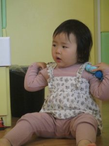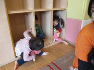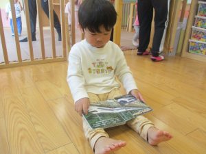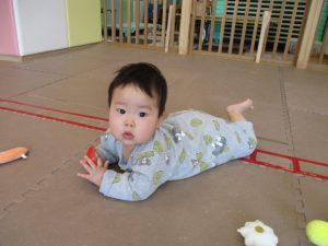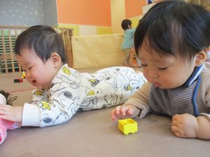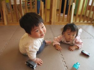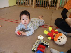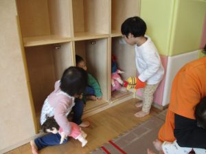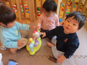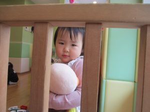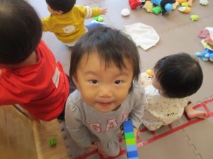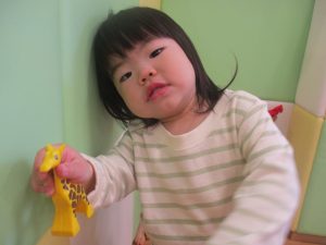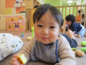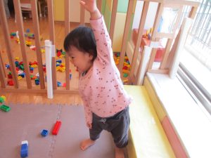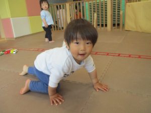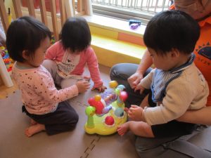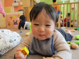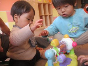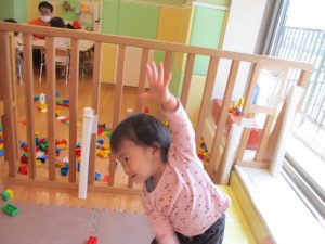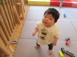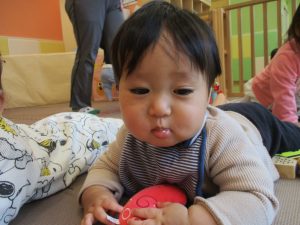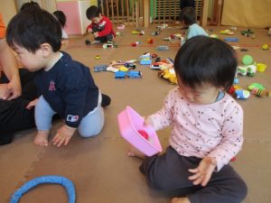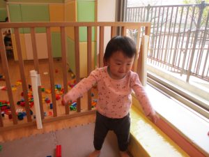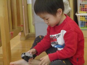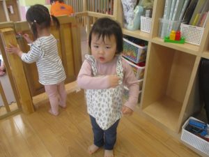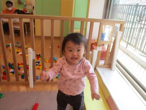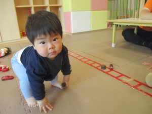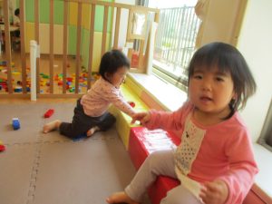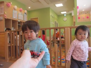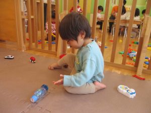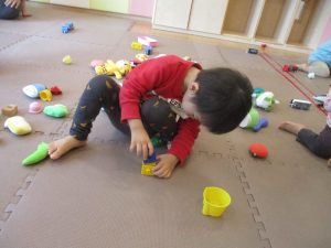 「保育園にはどんな玩具があるのかな?」と言わんばかりに、お気に入りの玩具を探している様子がなんとも可愛いですね♪