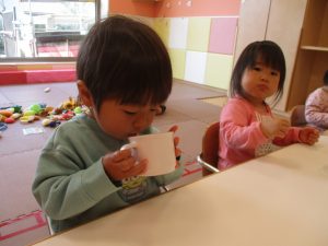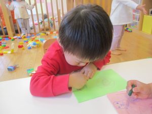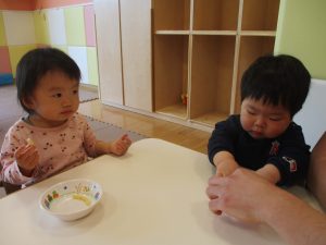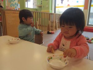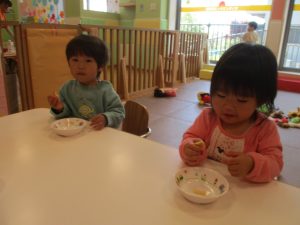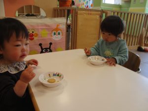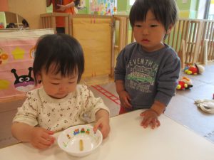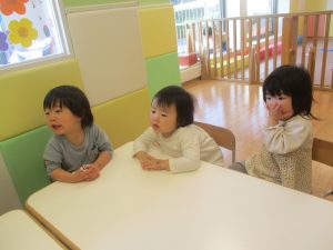 慣れ保育初日という事で室内で過ごしましたが、全体的に落ち着いておりました♪