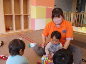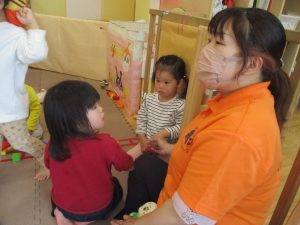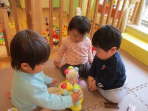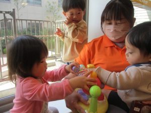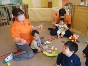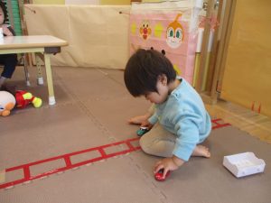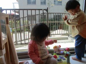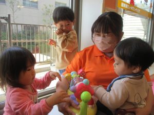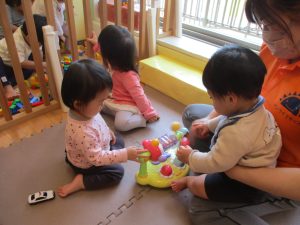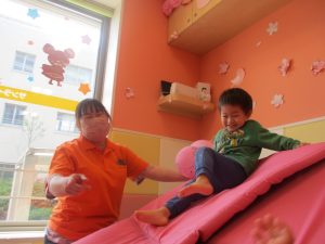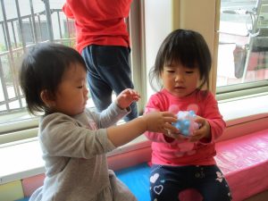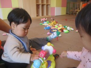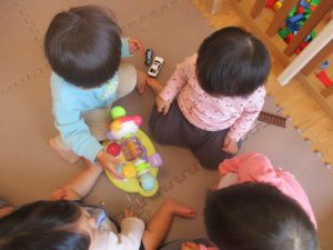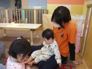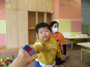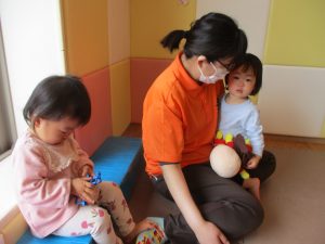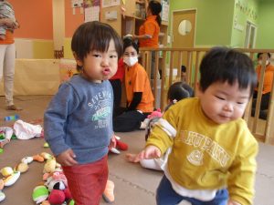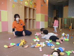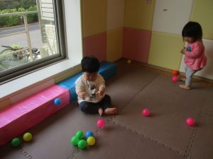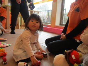 初日に比べるとお子様達の笑顔の時間も増え、それぞれが好きな玩具を見つけ楽しそうに遊んでおります!