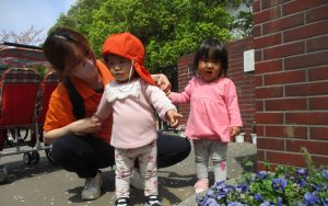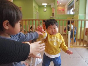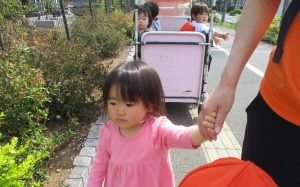 手を繋いでお散歩するお子様も、先生と一緒に1歩ずつ楽しそうに歩いております♪