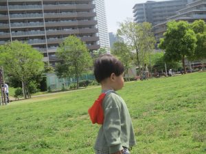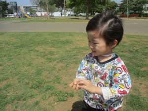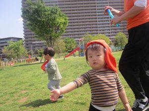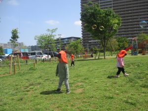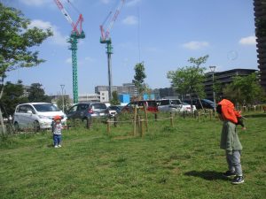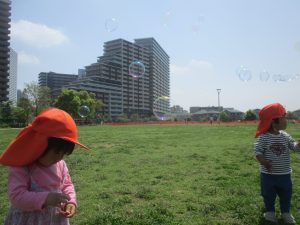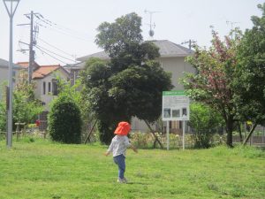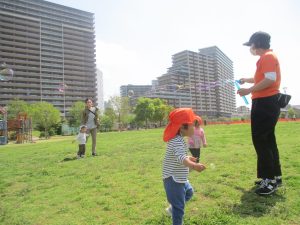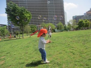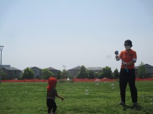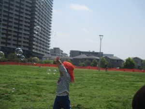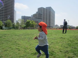 少し早めの夏日を観測し、気持ち良さそうに公園内の広場でシャボン玉を追いかけて体を動かしておりました。