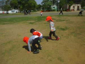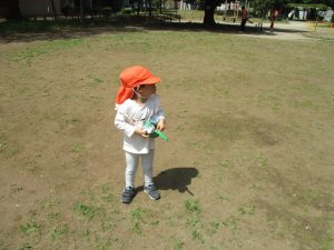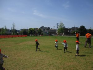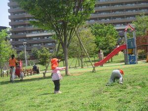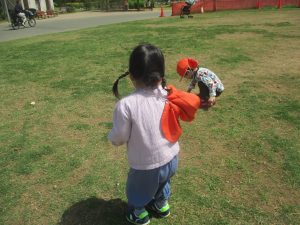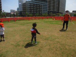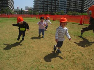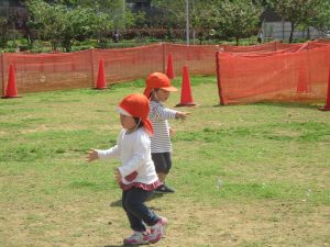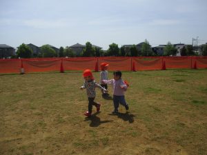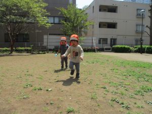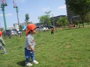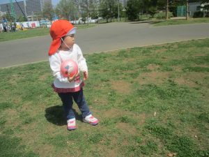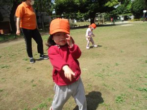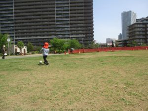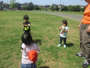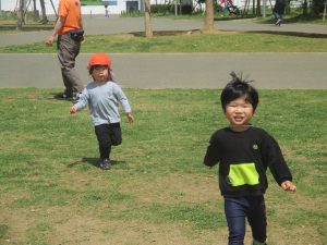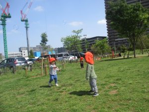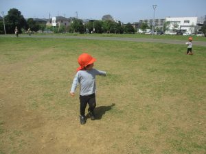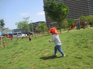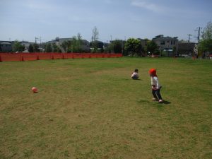 広場での追いかけっこやボールを使用して思い切り体を動かして遊び、とても喜んでおりました。