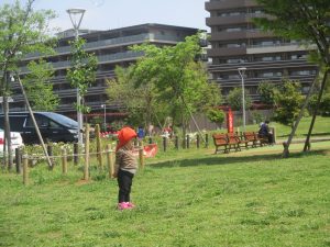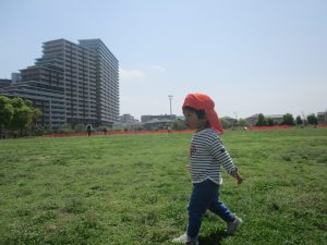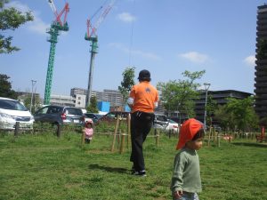2歳児クラスのお友達は防災公園にて過ごしました!