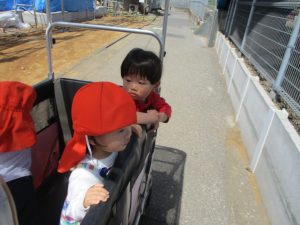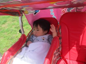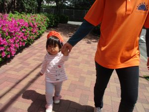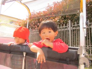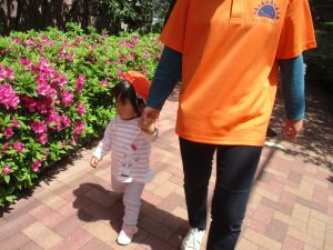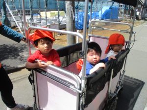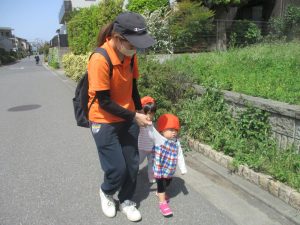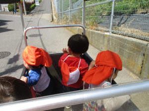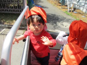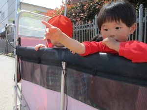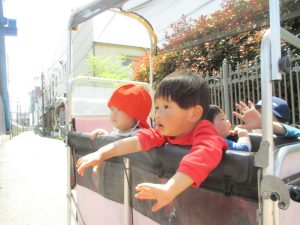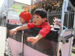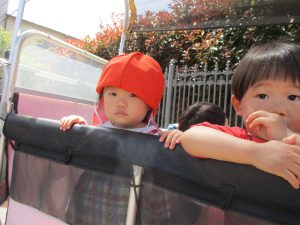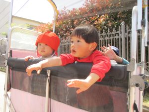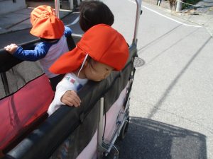 先生と手を繋いで歩いたり、カートに揺られながら気持ちよくウトウトとしたり等、それぞれの楽しみ方で戸外散歩を行っておりました。