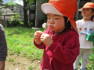 タンポポの綿毛飛ばしにもチャレンジしておりましたが上手に飛ばせたかな?