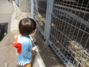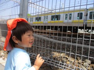 本日は線路脇から電車を見ましたが、電車の迫力に圧倒されながらも目が釘付けとなり、とても喜んでいる様子でした!