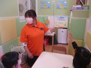 0歳児クラスのお友達は午前睡を行った後は製作活動を楽しみました!