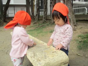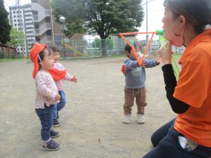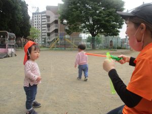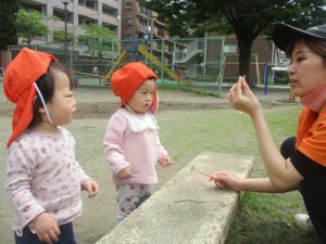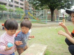 1歳児クラスのお友達は園裏の6丁目公園にて過ごしました。