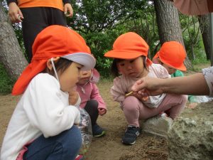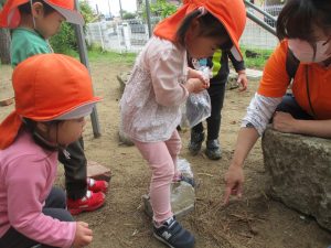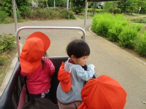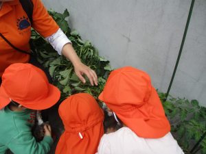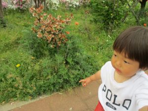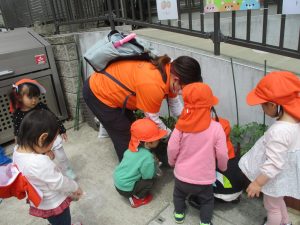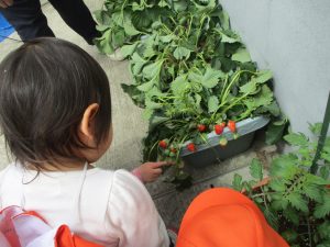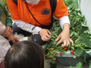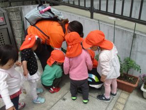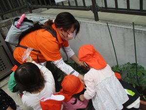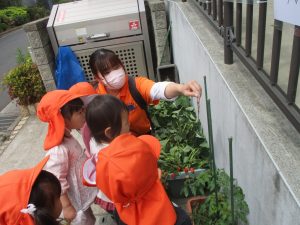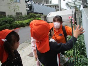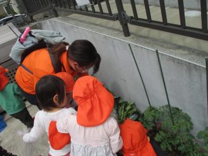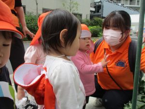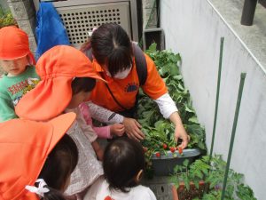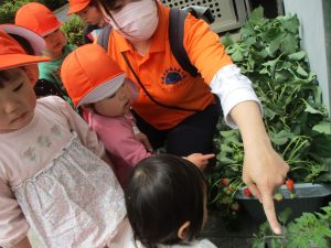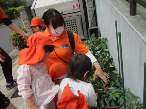 保育園に戻る際に園前の植栽の確認も皆で行ない「いちごあかーい!」と、とても喜んでいました!