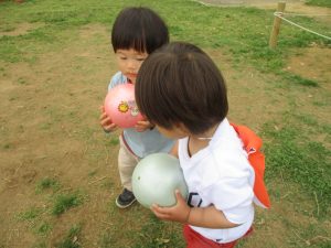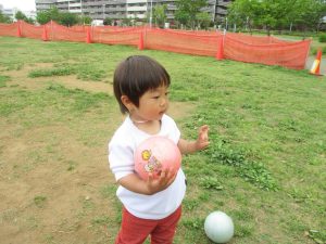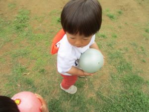 先生が転がしたボールを「キャー!」と言いながら追いかけたり、大事そうに抱えては楽しそうに過ごしておりました。