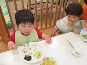 体調を崩してお休みされていたお子様も元気に登園し、給食をモリモリ食べてくれ一安心です♪
