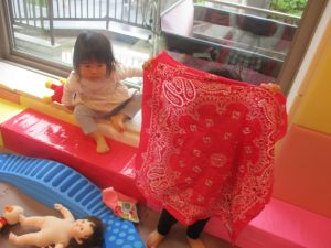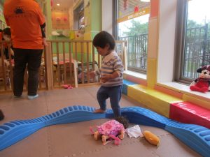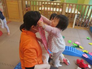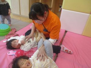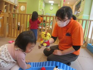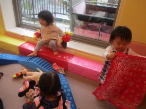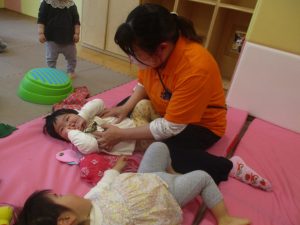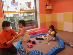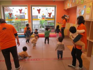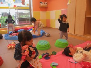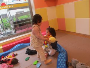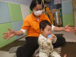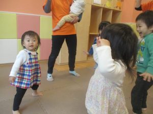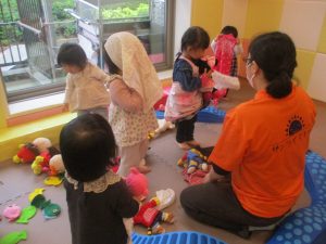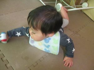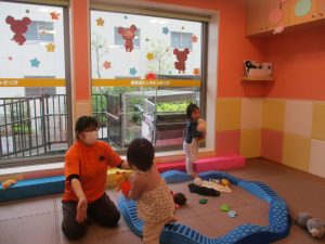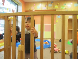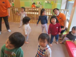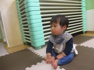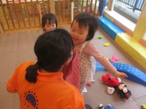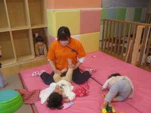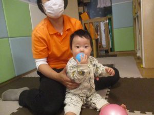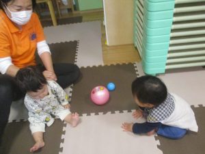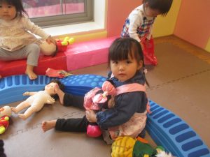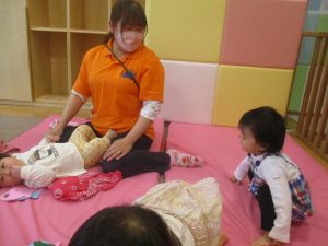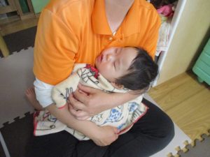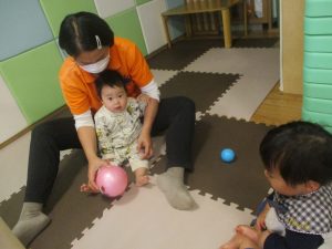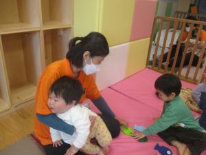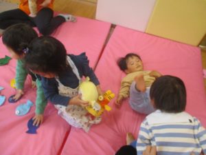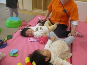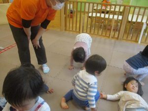 0歳児クラスのお友達は室内にて過ごしました。