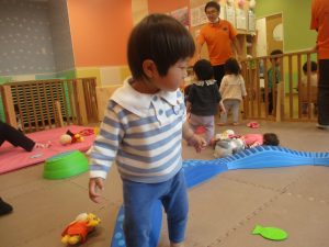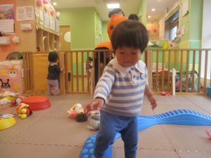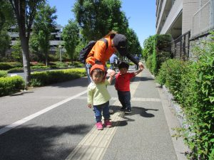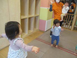 手を繋いで歩けるお子様も先生と一緒に頑張って歩いており、日に日に自信がついているように感じます♪