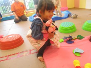 朝方の体操を楽しんだ後は、平均台を組み合わせたサーキット遊びや製作活動を行いました。