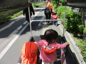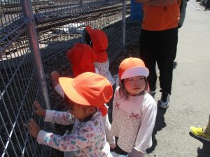 気持ちの良い青空の下、電車を見て楽しんだり線路沿いでの虫探しに夢中でした!