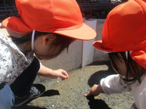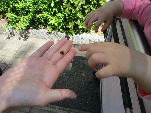 こちらも道路で花を見たり、てんとう虫を見つけてはとても喜んでおりました。