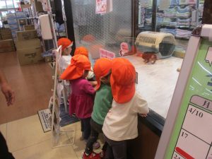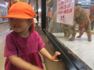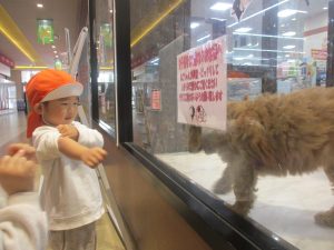 2歳児クラスのお友達は園周辺のモール内にありますペットショップまでお散歩を楽しみました!
