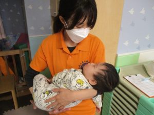 午前寝の時間が多かったですが、日に日に体力もついてきており少しずつ生活リズムを作り戸外活動も楽しんでいきましょう♪
