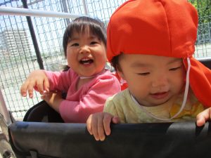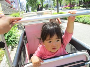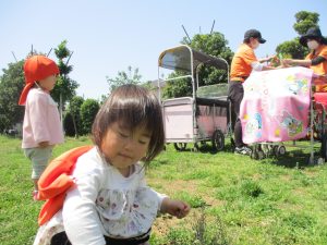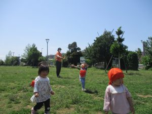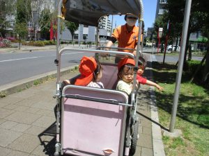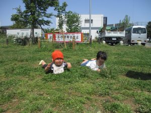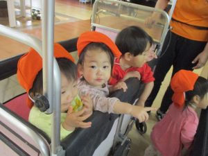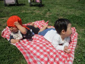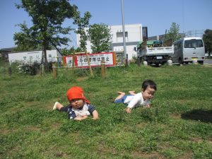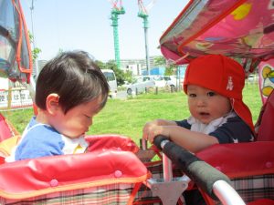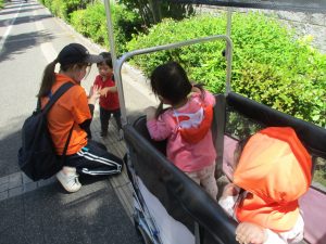 0.1歳児クラスのお友達は防災公園までお出かけ致しました。