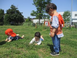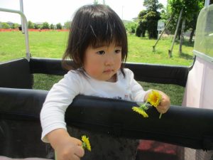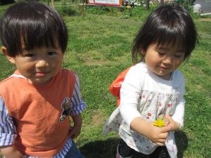 広場でのかけっこや花や草といった自然物を見つけては大事そうに握りしめておりました♪