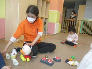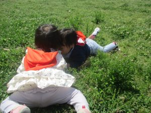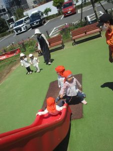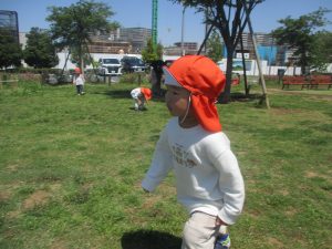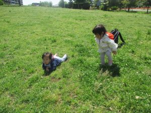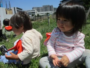 2歳児クラスのお友達は防災公園にて過ごしました。