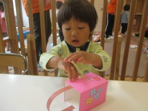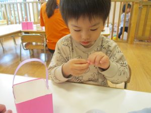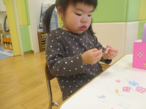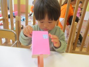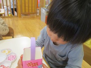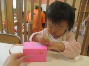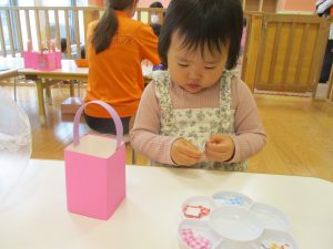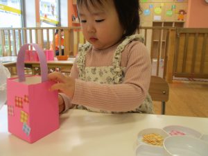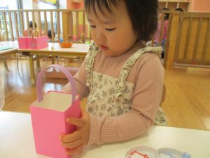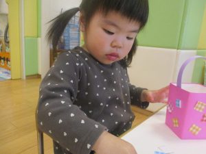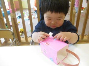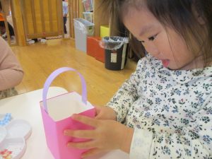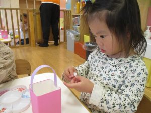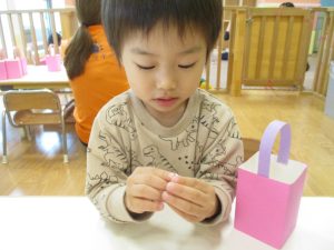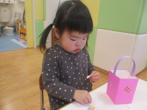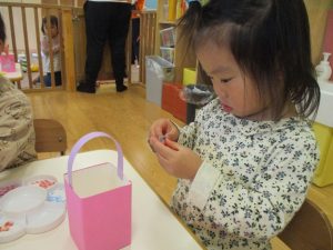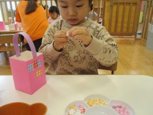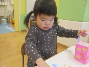 室内では主に製作活動を楽しみそれぞれが思い思いにシールを貼り、特製バッグを仕上げておりました。