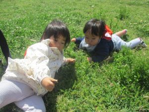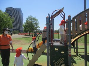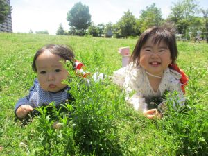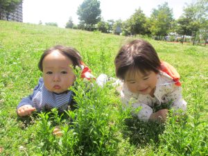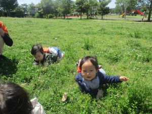 0.1歳児クラスのお友達は防災公園にて過ごしました!