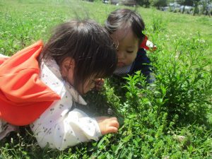 芝生の上で寝転んだり、草花を楽しそうに探してはお気に入りを見つけておりました。