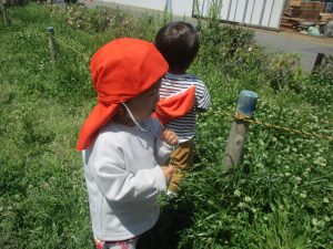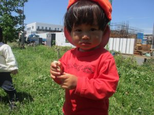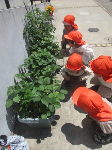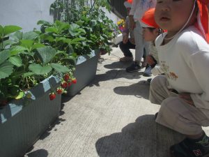 保育園前の植栽にも興味津々で、特にいちごへの情熱がひしひしと伝わって参ります。笑