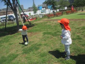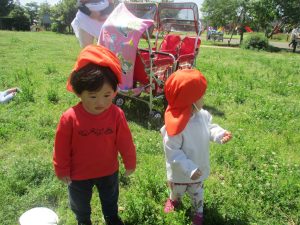 2歳児クラスのお友達は1号公園にて過ごしました。