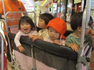 0.1歳児クラスのお友達もペットショップ経由で防災公園までおでかけ!