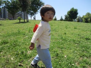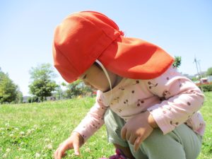シャボン玉を追いかけたり、芝生の上に座ってはお気に入りの花を見つけておりました。