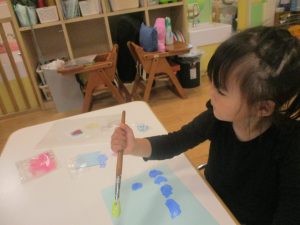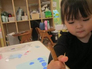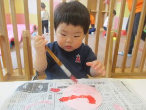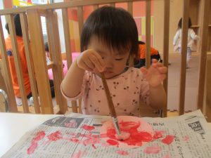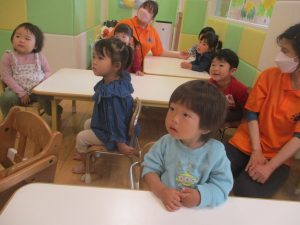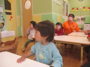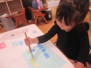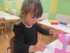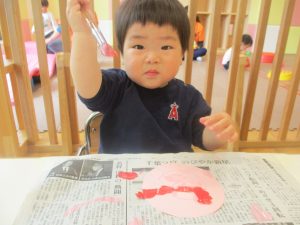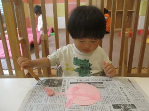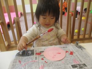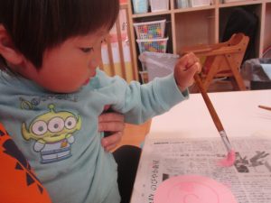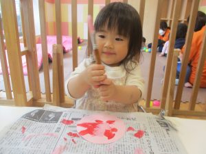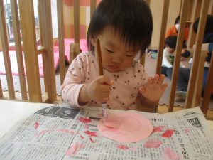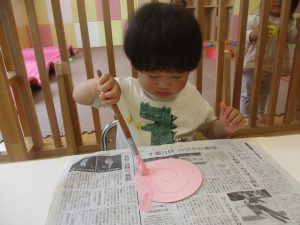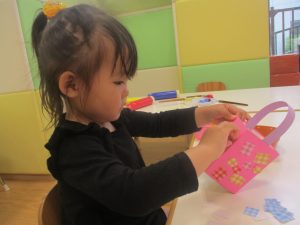 長らくお休みされていた2歳児クラスのお友達も製作を楽しんでおります♪