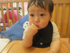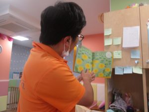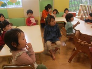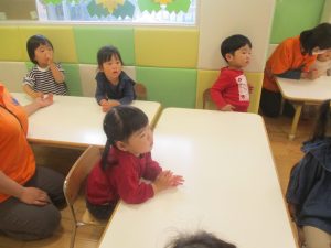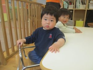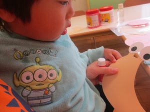 その後、1歳児クラスのお友達は製作活動を行いましたが、この時期らしい可愛い生き物が完成しそうです♪