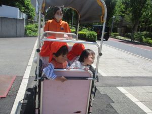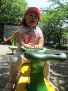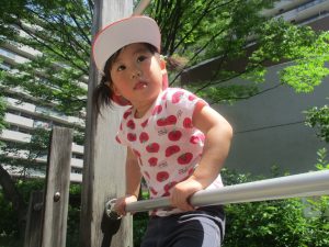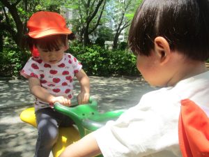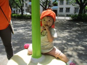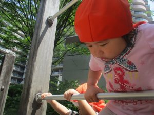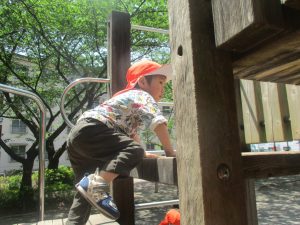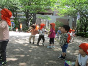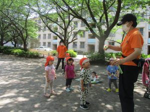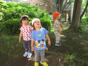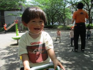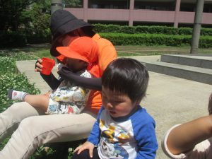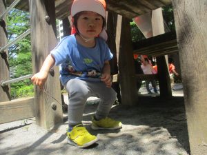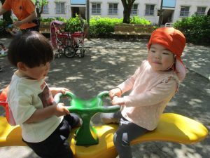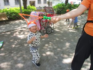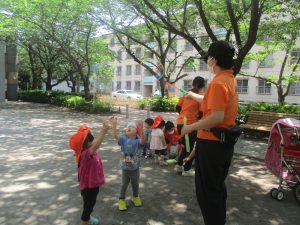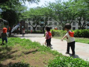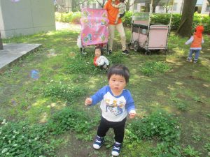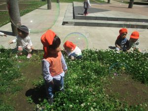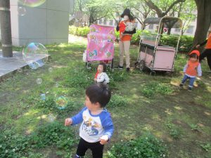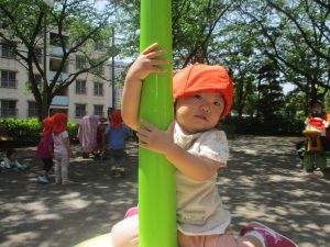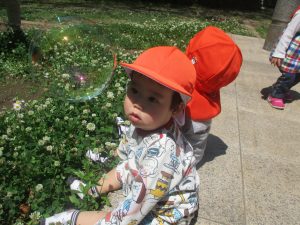 気温もグンと上がり初夏の陽気を感じながらシャボン玉を追いかけたり、固定遊具を使用して思い切り体を動かして遊びました。