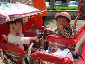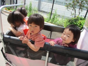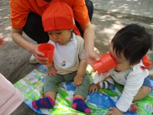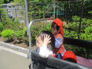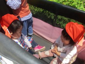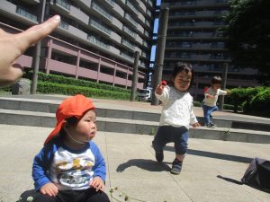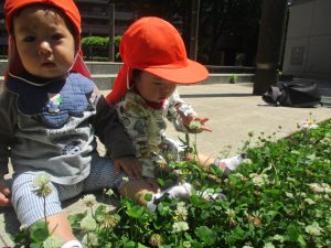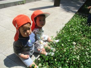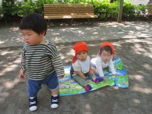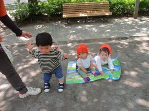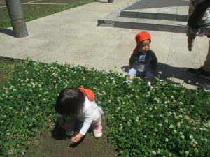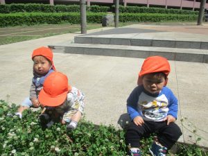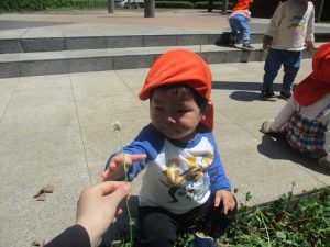 0.1歳児クラスのお友達はさくら公園の奥まで冒険へ出かけました。