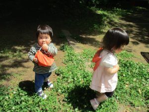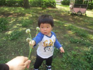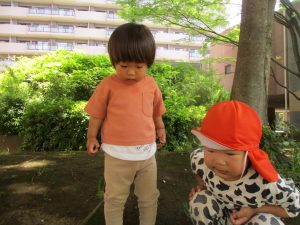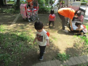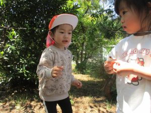 日陰では草花をじーっと観察する姿も見られ、日々自然物への興味や関心が深まっているようにも感じます!