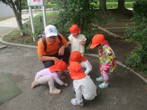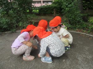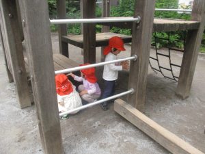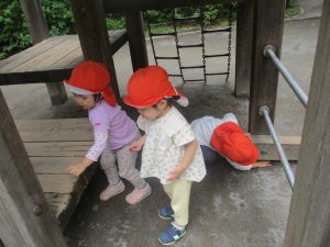 虫探しを楽しんだり、固定遊具を使用して心行くまで体を動かして遊びました。