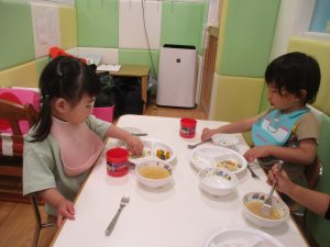 出来立てホヤホヤの谷津園給食♪