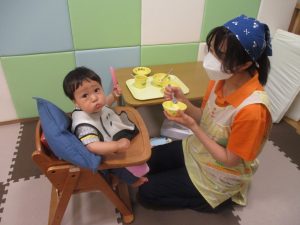 「見ててね!!!」と大きなお口で食べる姿がなんとも可愛いですね。