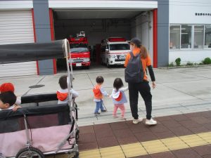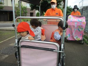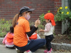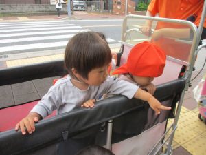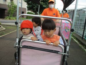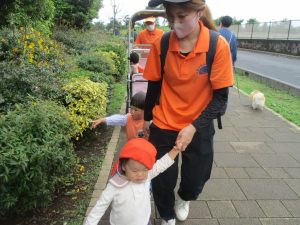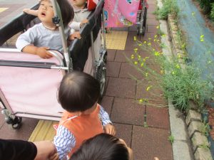 0.1歳児クラスのお友達は園周辺の戸外散歩を楽しみました!