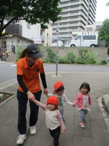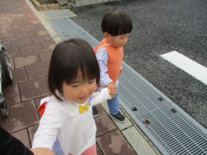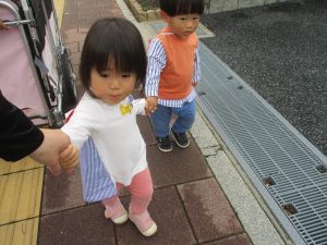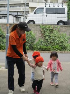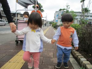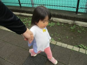1歳児クラスのお友達も手を繋いで歩く事が日に日に上手になってきました♪
