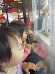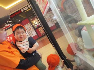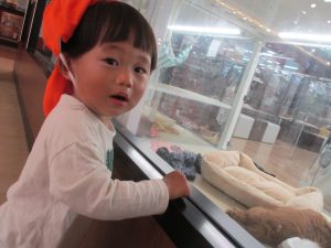 モール内にあるペットショップに立ち寄り、犬や猫を見ては目が釘付けとなっておりました。