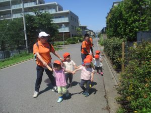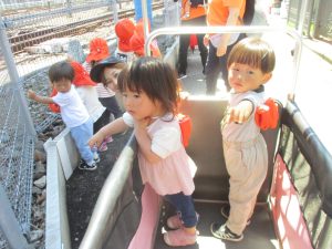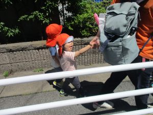 みんなで電車も見に行くことができ「キタキター!ガタンゴトン!」ととても盛り上がるお散歩でした。