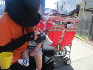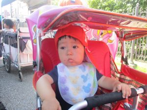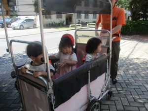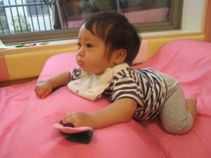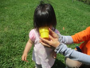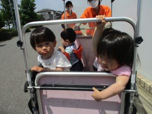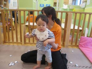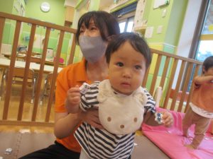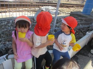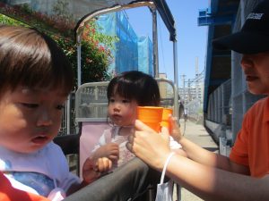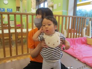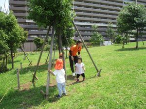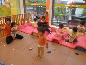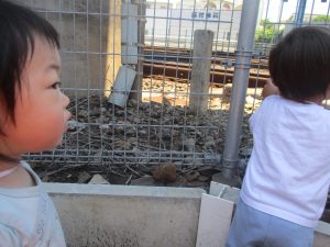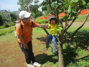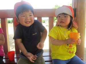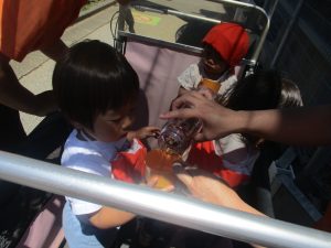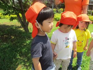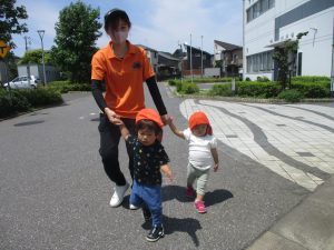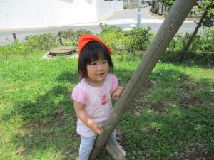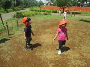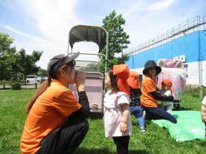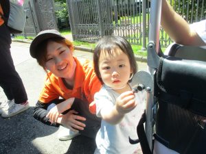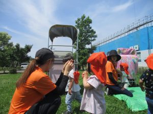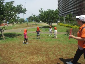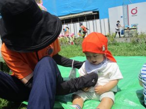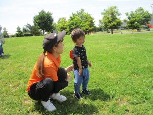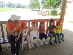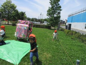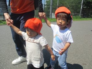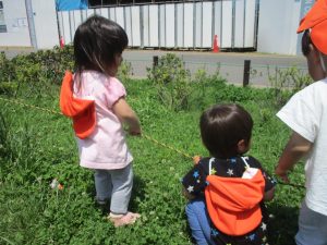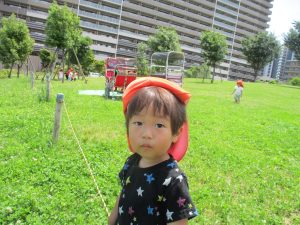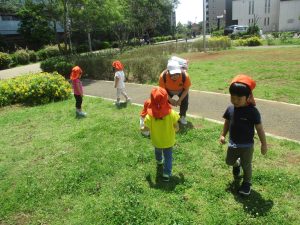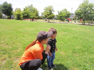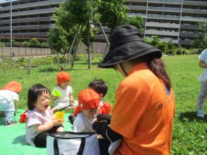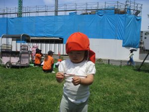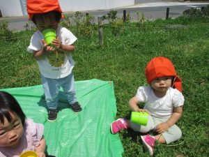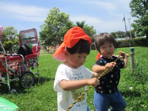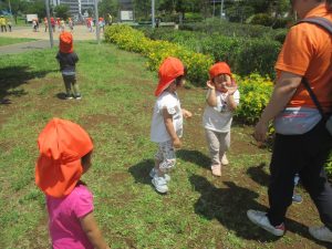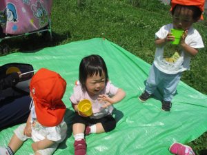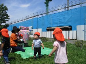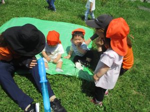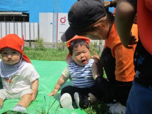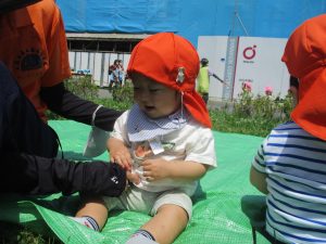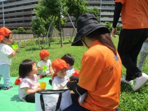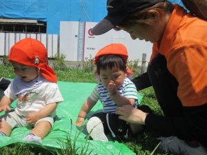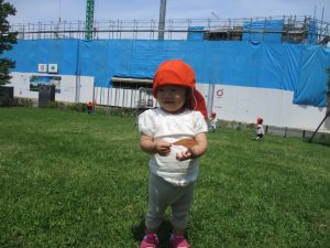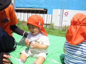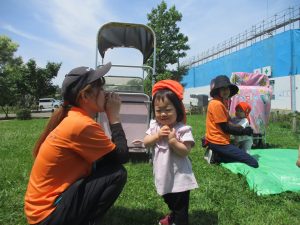 0、1歳児クラスのお友達も防災公園にて過ごしました。