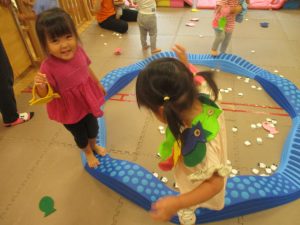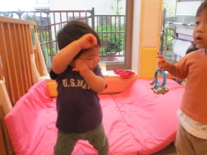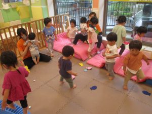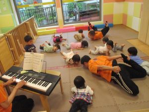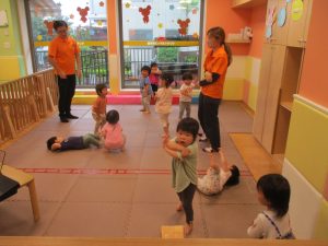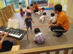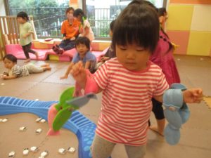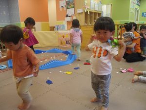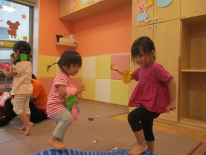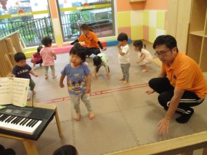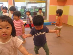金曜日は雨天となりましたが、みんなで賑やかにリトミックからスタート!