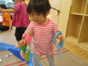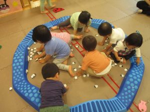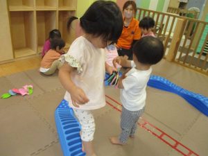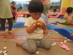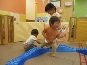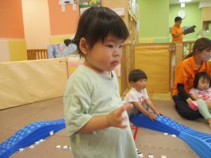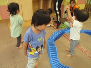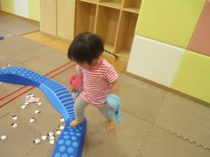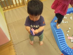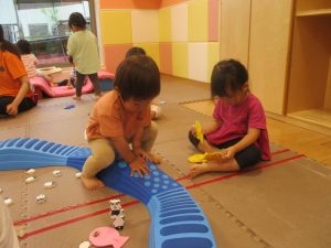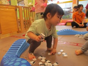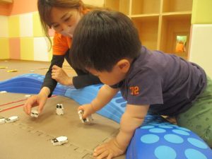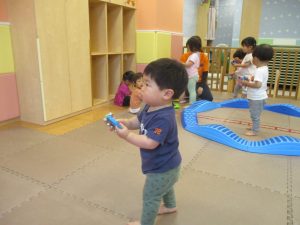 リトミックの後は、室内ででミニサーキットや指先遊びのコーナーを使ってそれぞれが好きなコーナーで遊んでおりました♪
