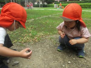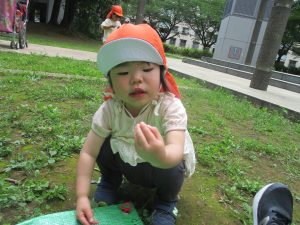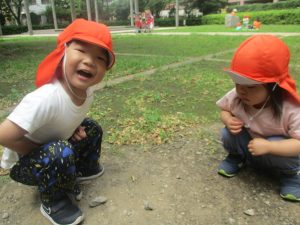 木の実や草花、虫と言った自然物探しを楽しみ大満足の様子です♪