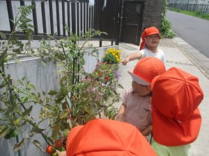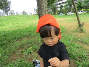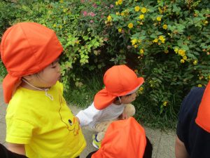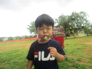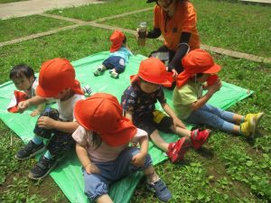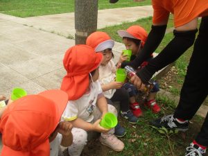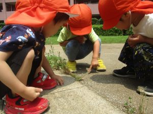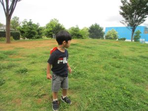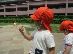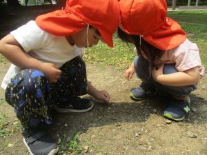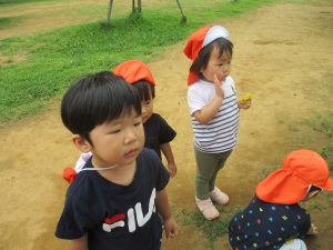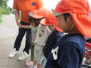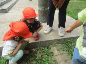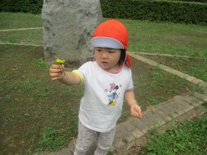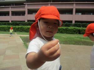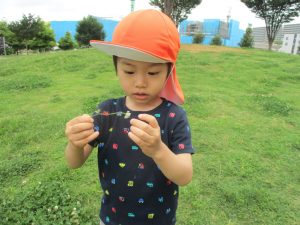 草花や虫と言った自然物探しを存分に楽しみ、先生が捕まえたとんぼを興味津々に見つめておりました!